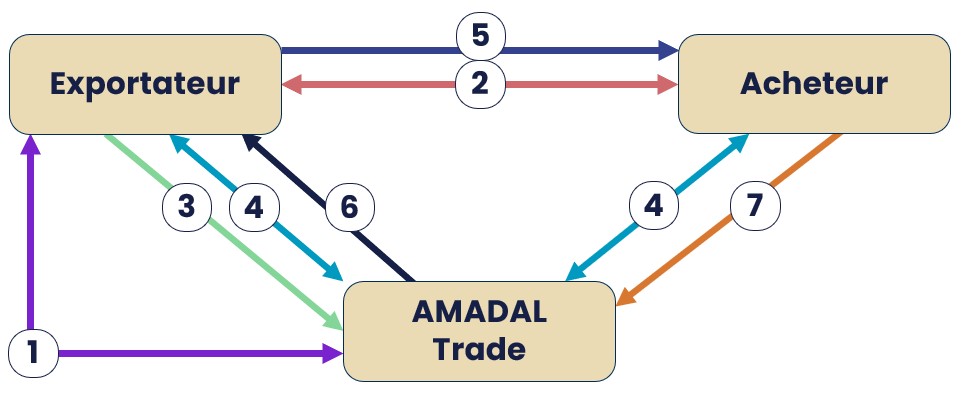 7. Paiement selon le contrat (l’acheteur international paie AMADAL Trade)